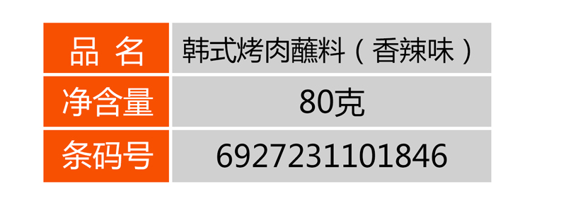 > 燒烤系列 > 韓式烤肉蘸料(香辣味)