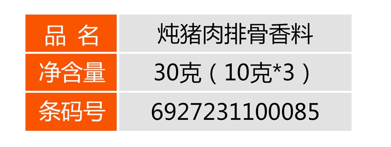 > 燉料系列 > 燉豬肉排骨香料